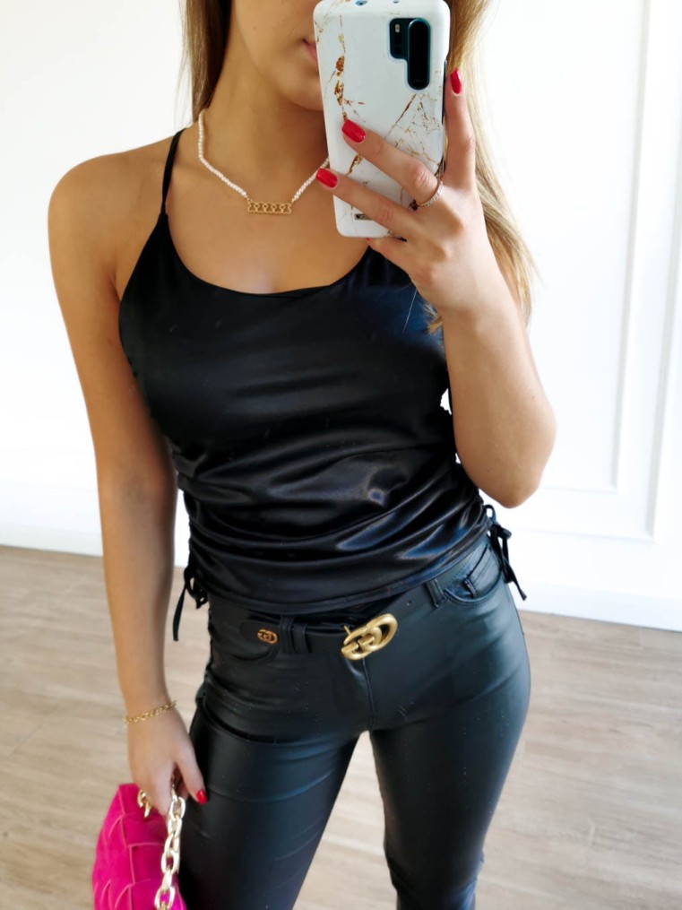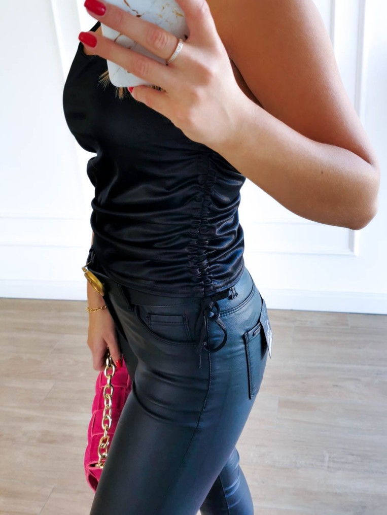 mili bluzka czarna atłasowa z marszczeniami krótka