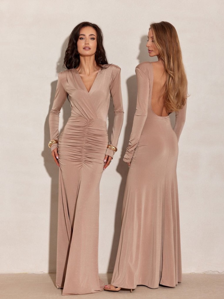Ariella – długa beżowa sukienka maxi-ponadczasowa elegancja w nowoczesnym wydaniu.