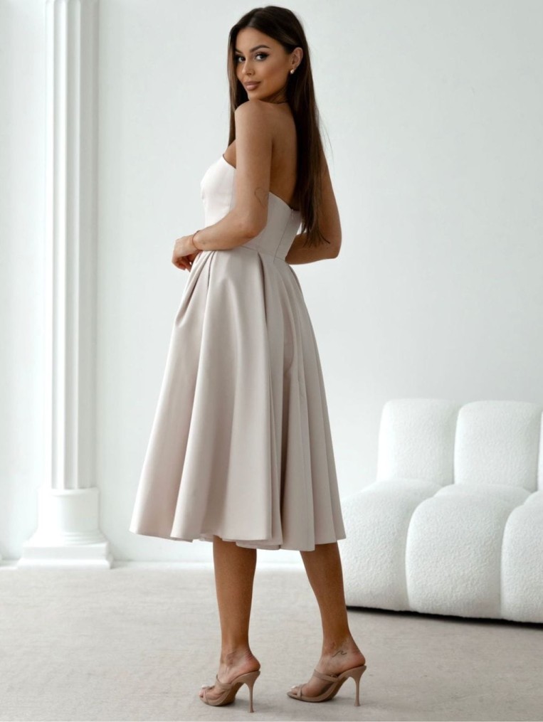 Beauty gorsetowa beżowa sukienka midi