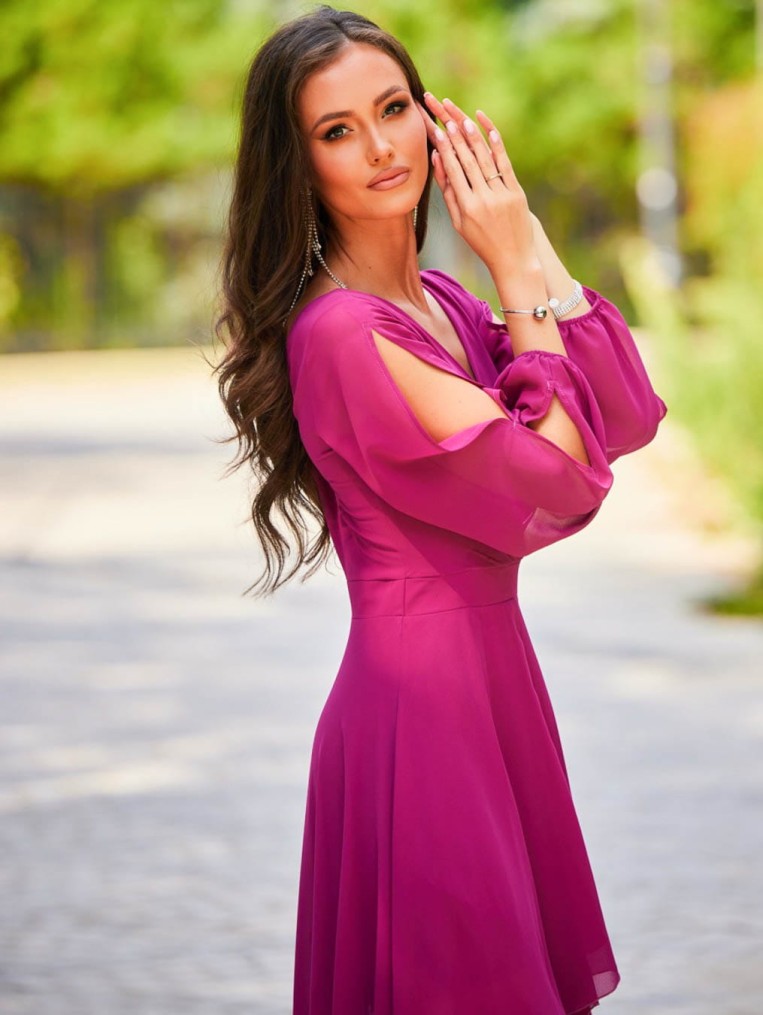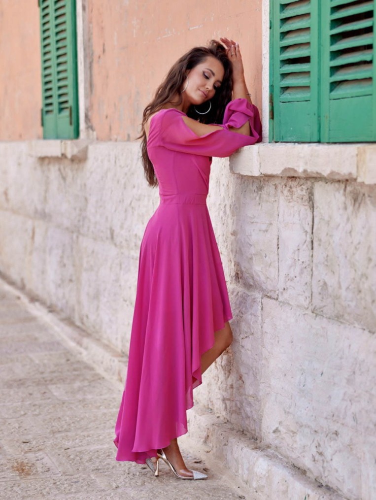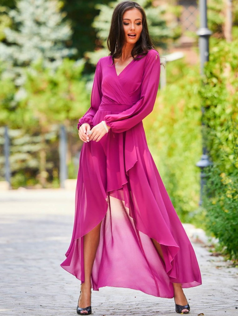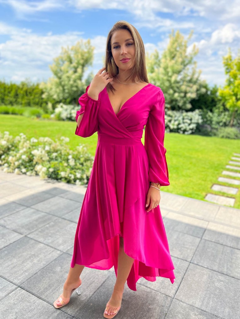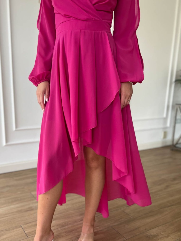 Elegancka szyfonowa fuksjowa sukienka z długim rękawem luca
