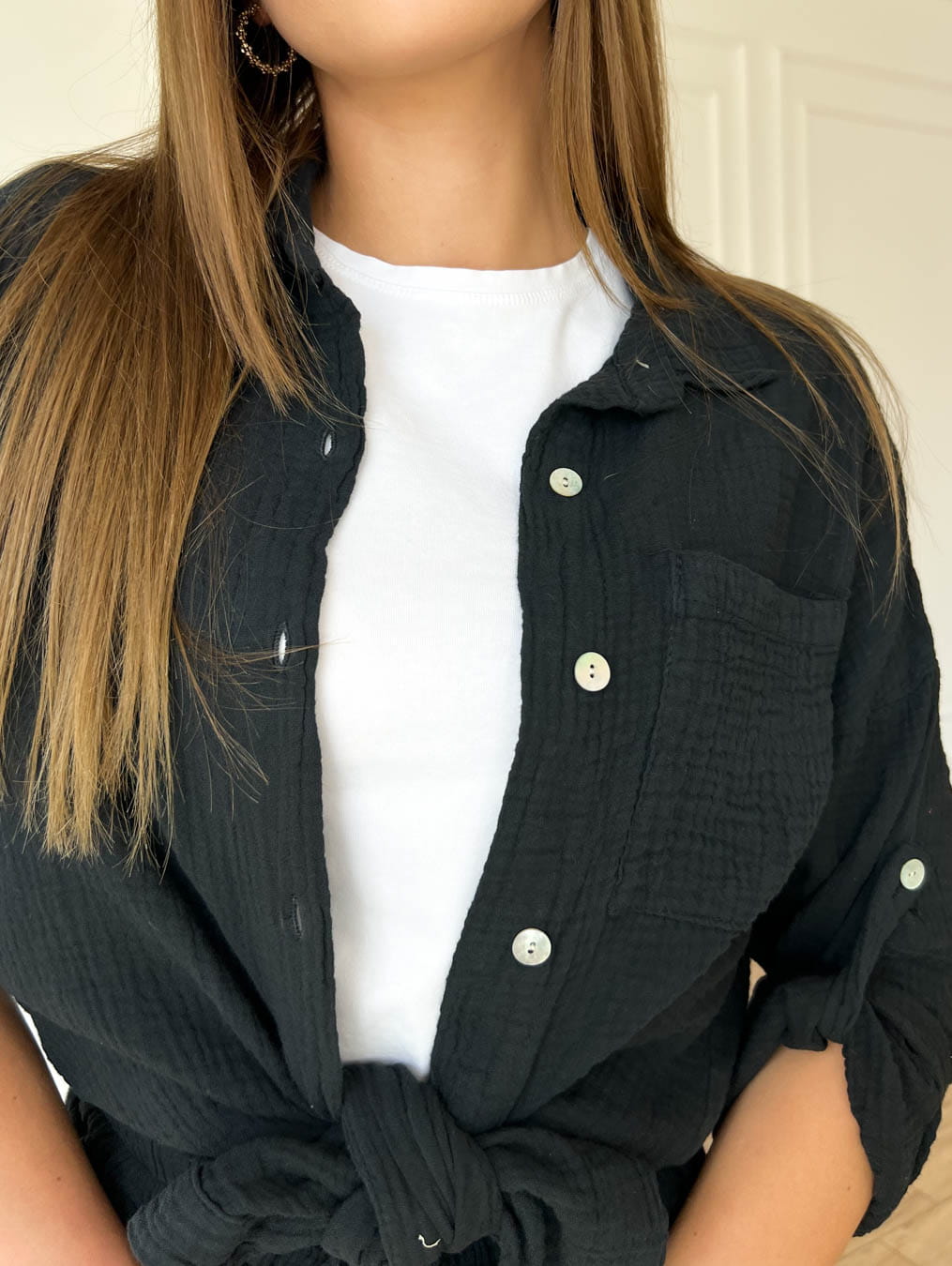 Idealny na letnie dni. Super opcją jest możliwość wykorzystania samej koszuli, jako nawet narzutka.