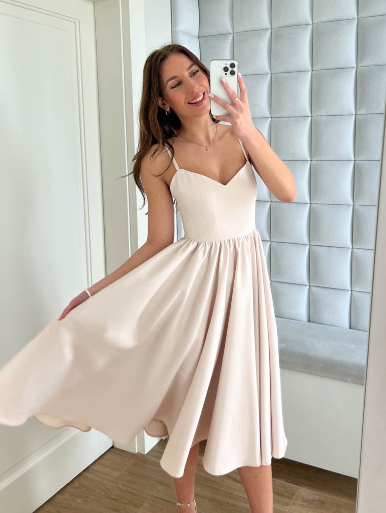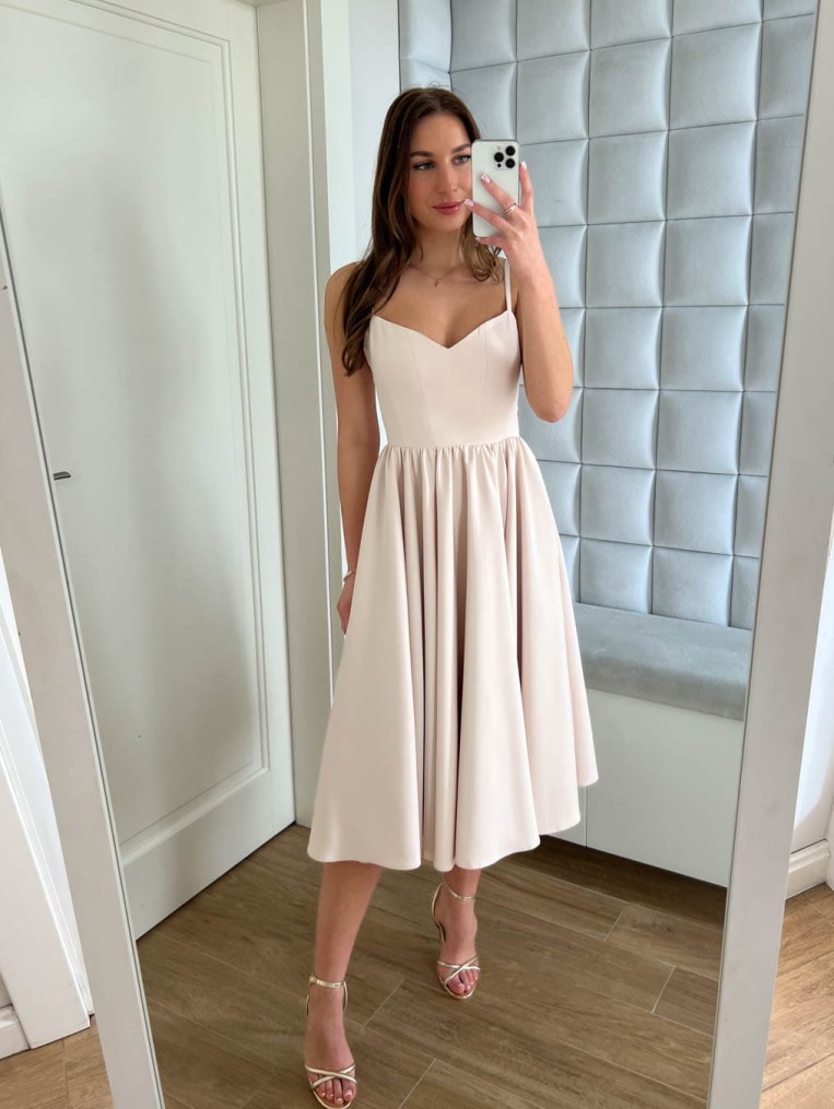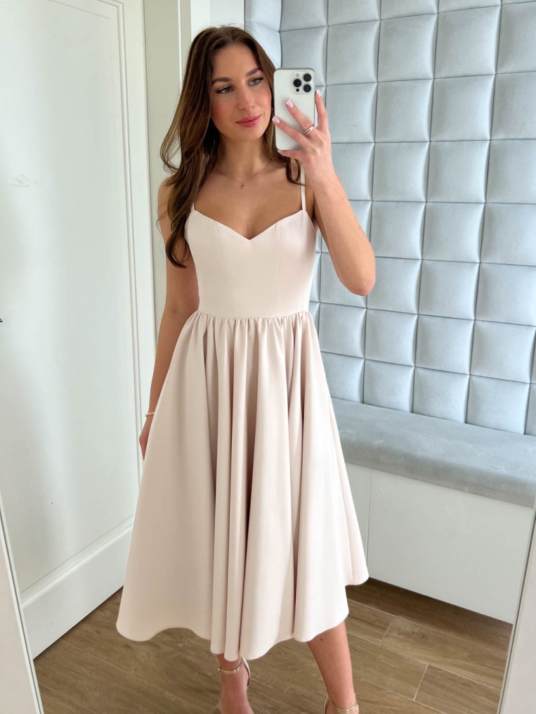 Lover beżowa midi sukienka koktajlowa rozkloszowana