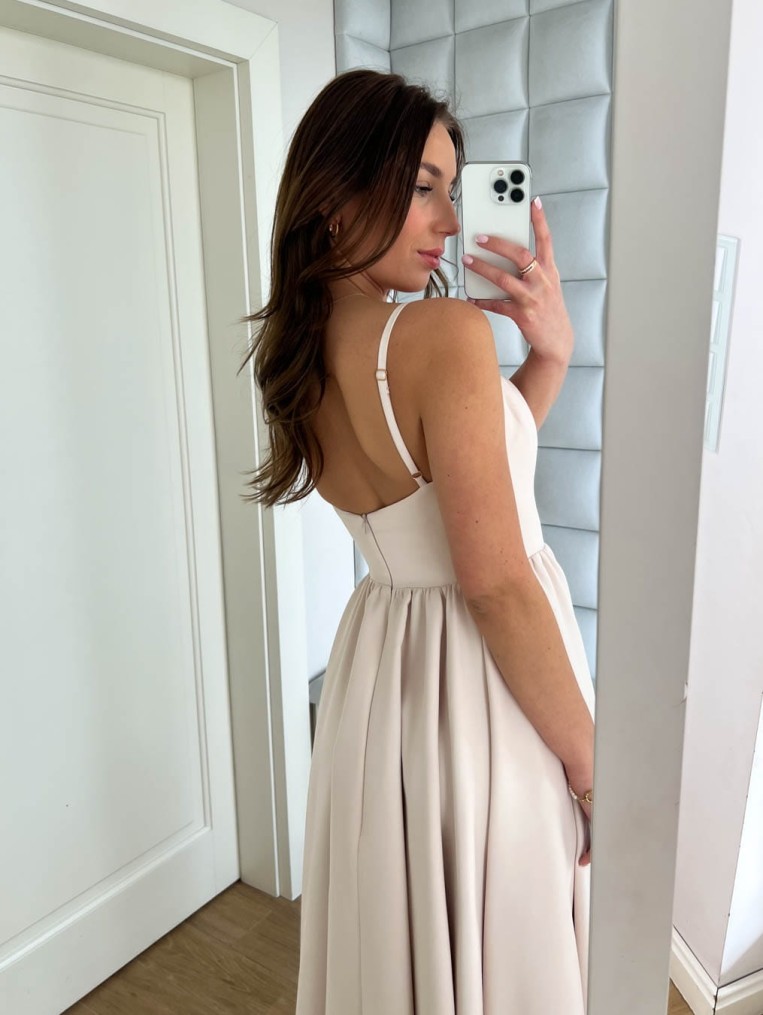 Przepiękna koktajlowa Sukienka midi LOVER w kolorze beżowym.