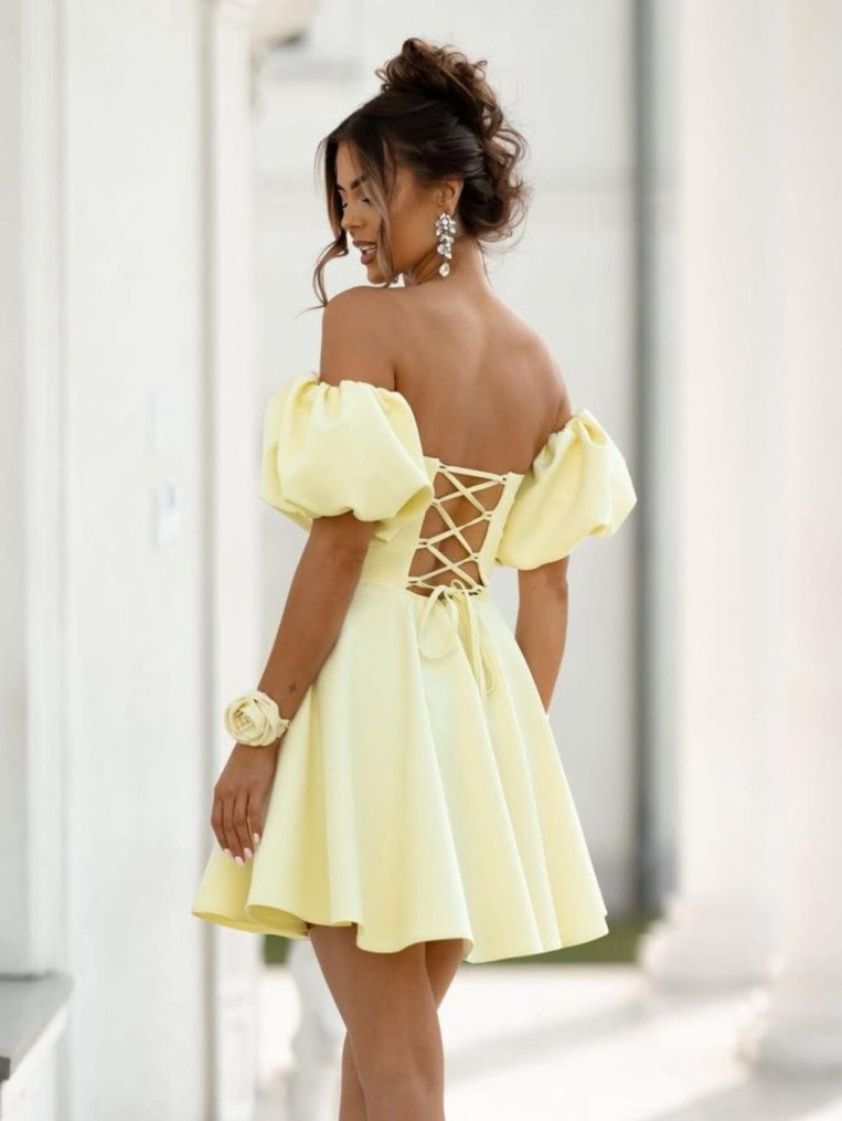 OLIVIA to przepiękna mini sukienka gorsetowa z koła w żółtym kolorze