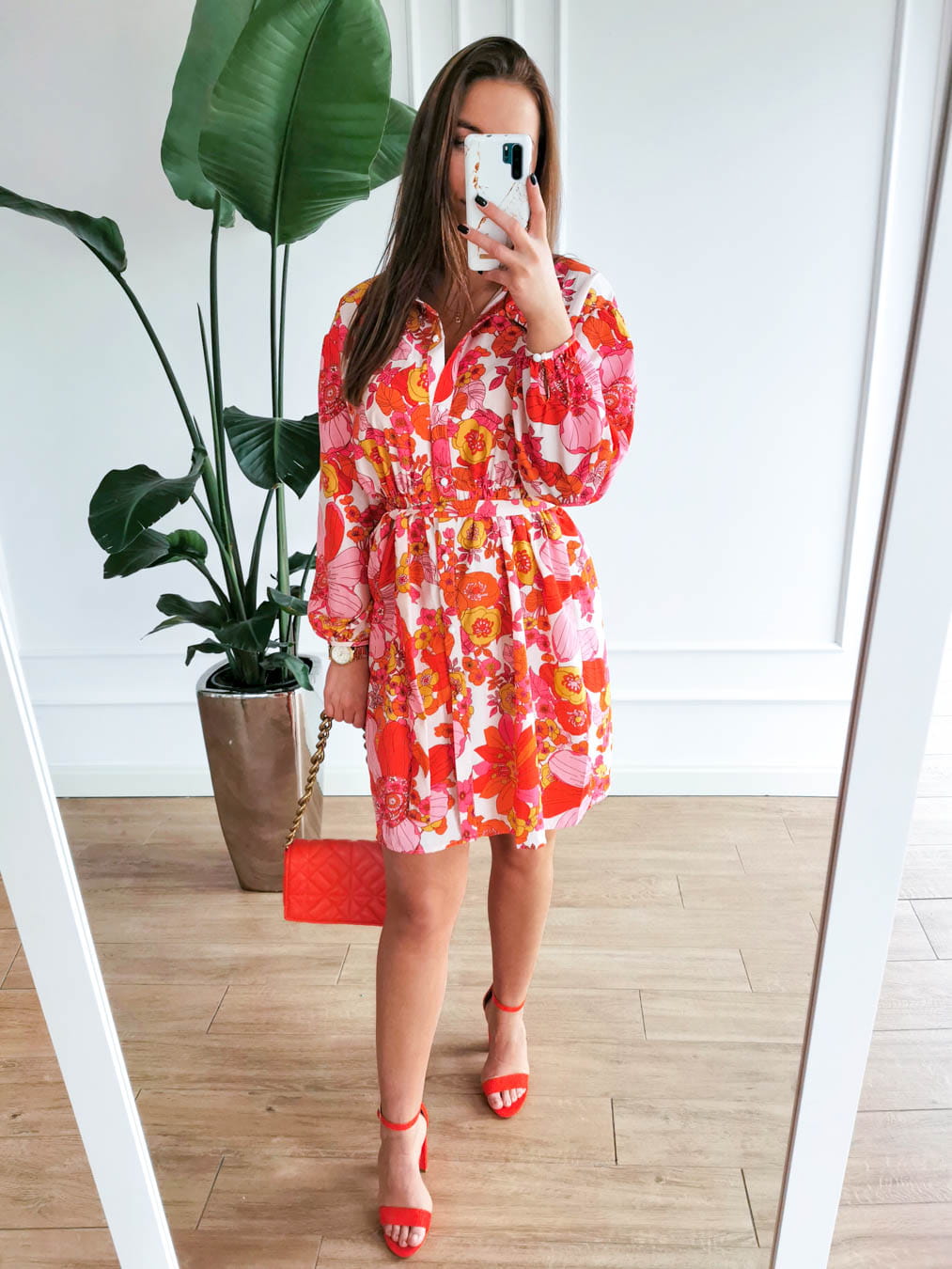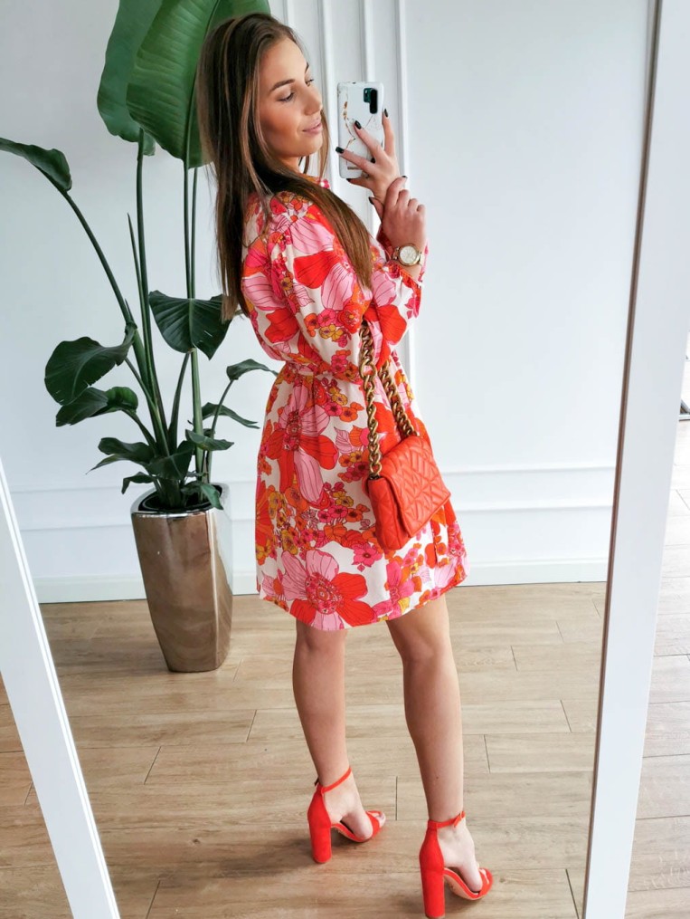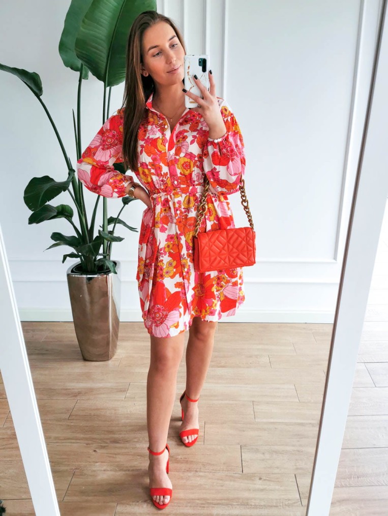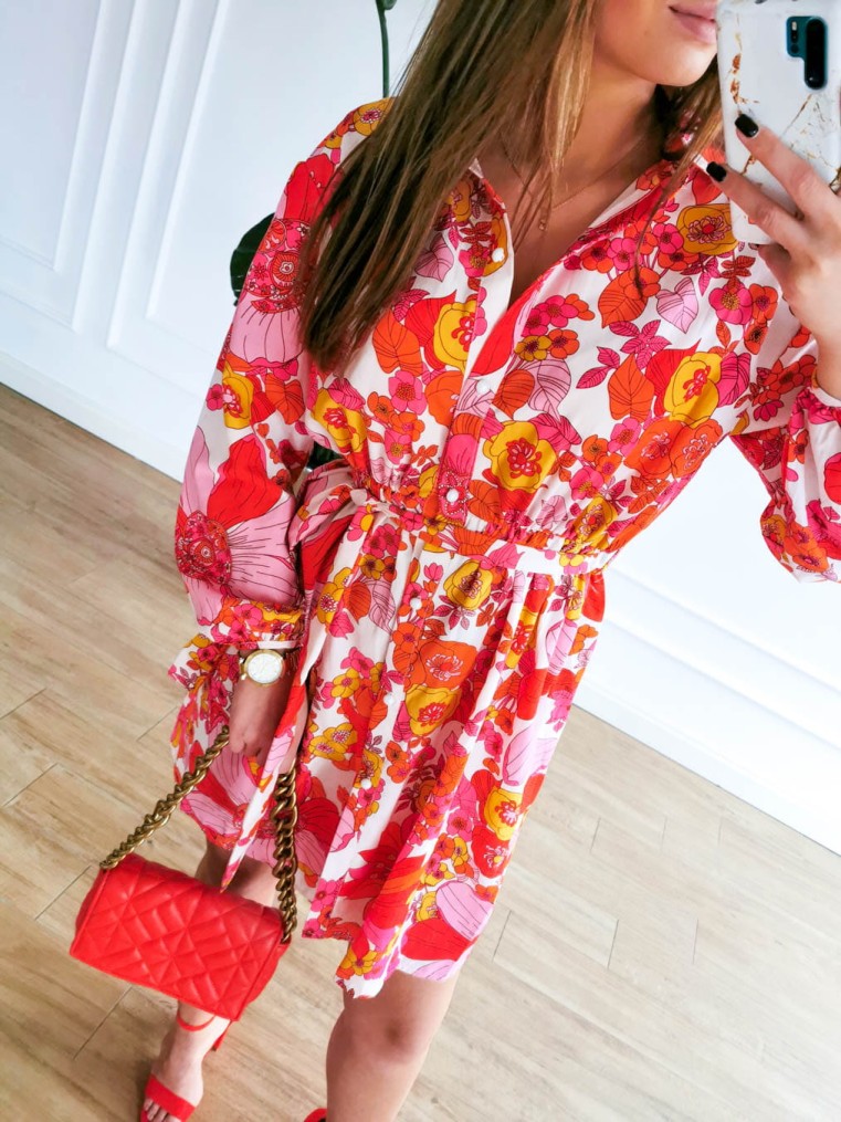 Rozpinana koszulowa sukienka w kolorowe kwiaty pom