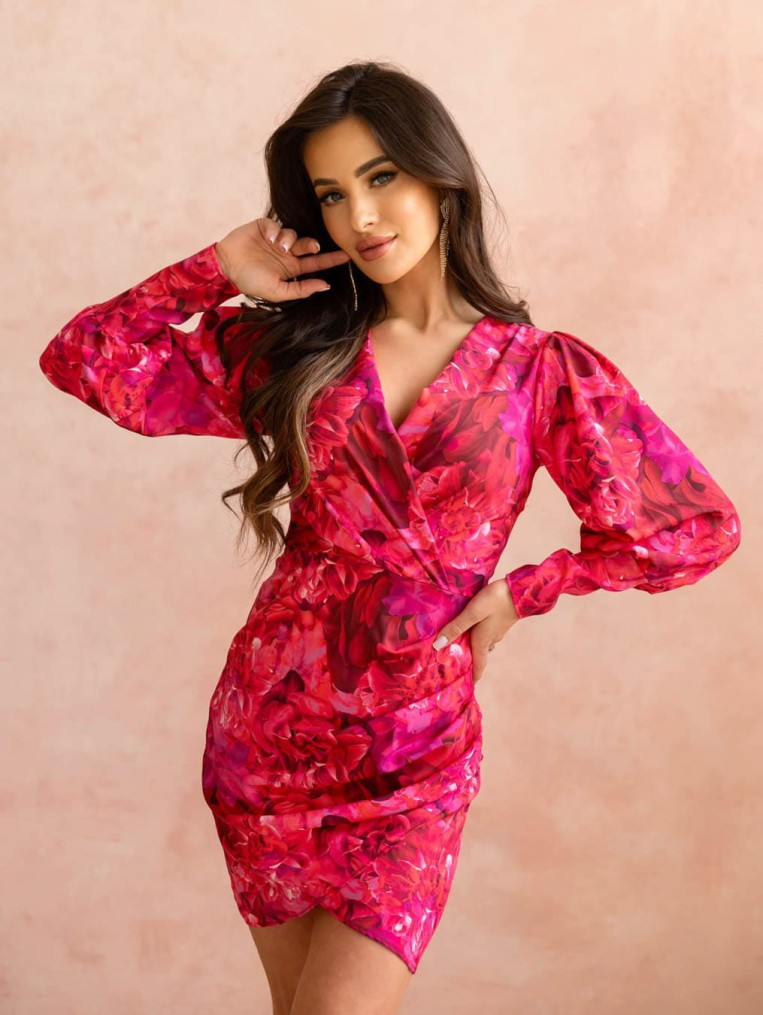 Przepiękny print w różowe i czerwone kwiaty robi ogromne wrażenie