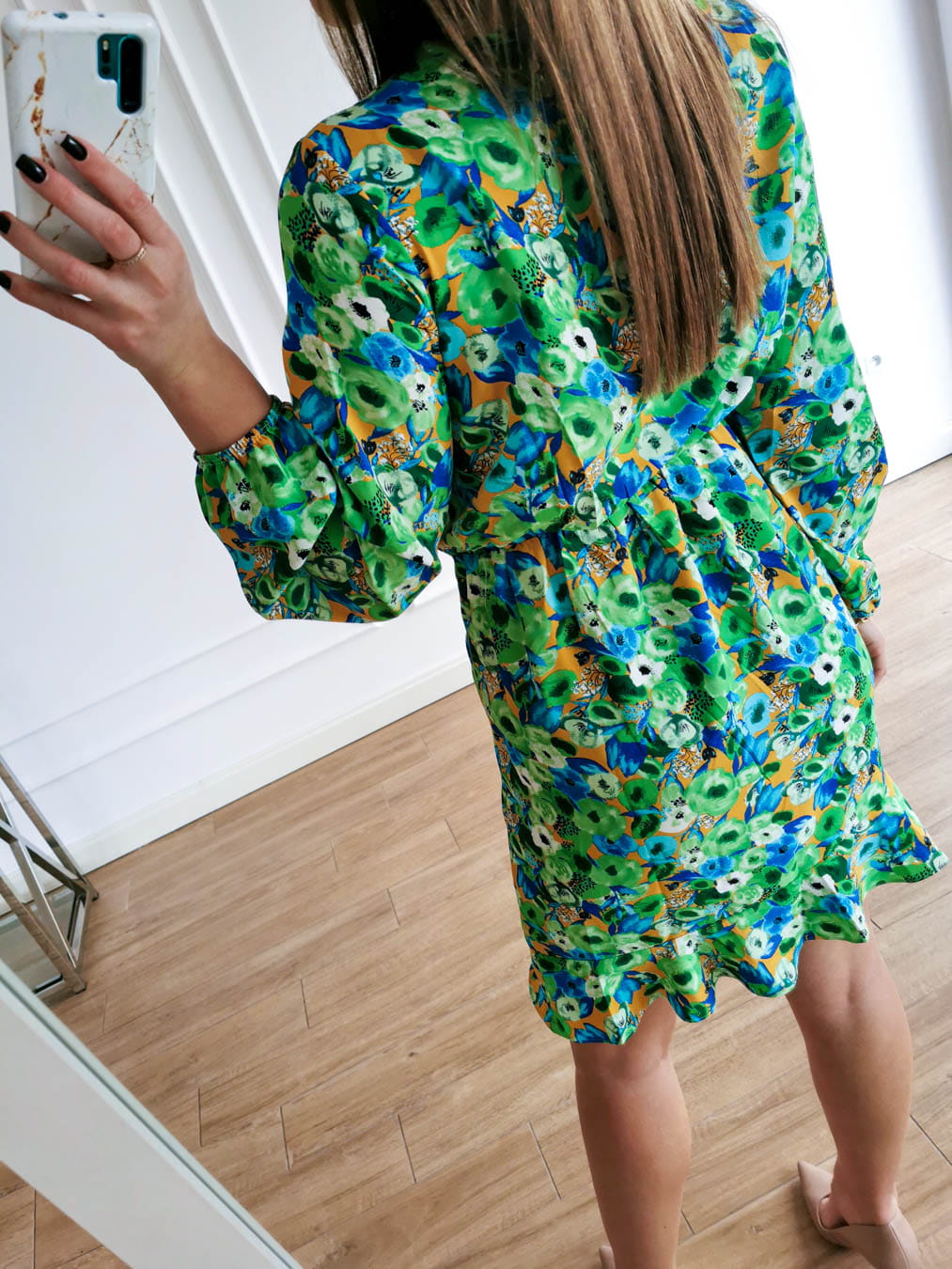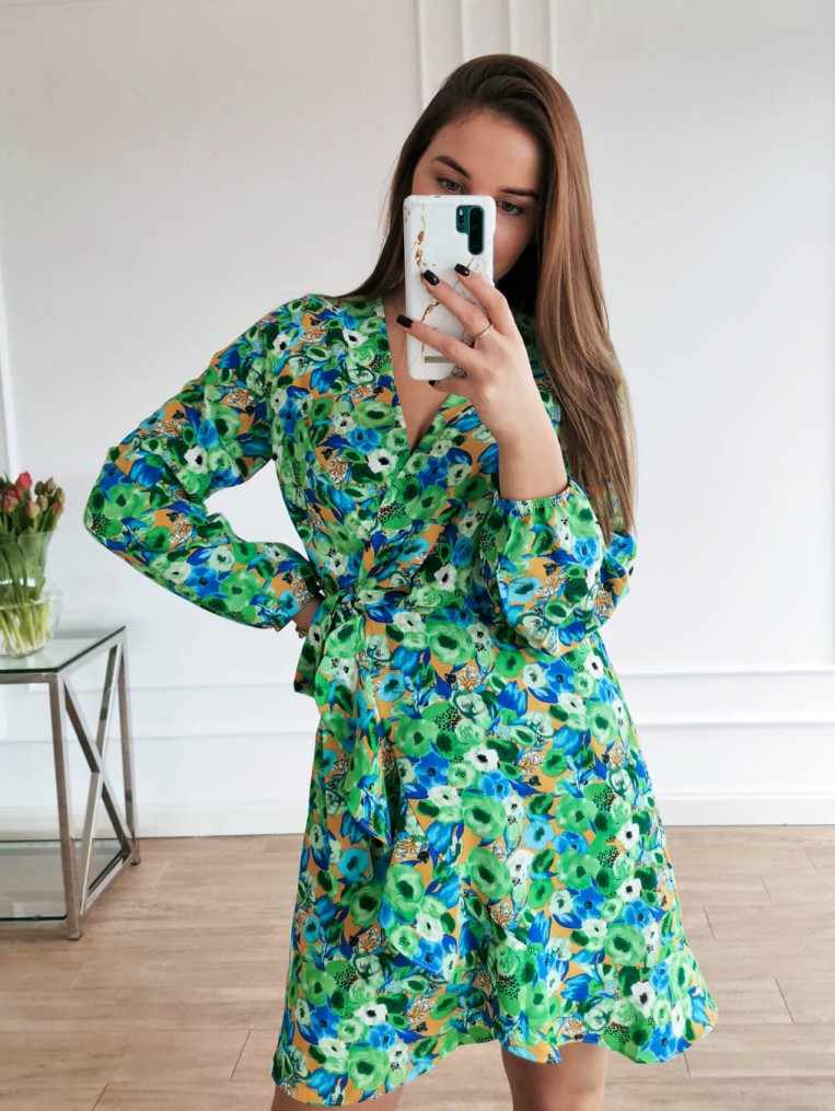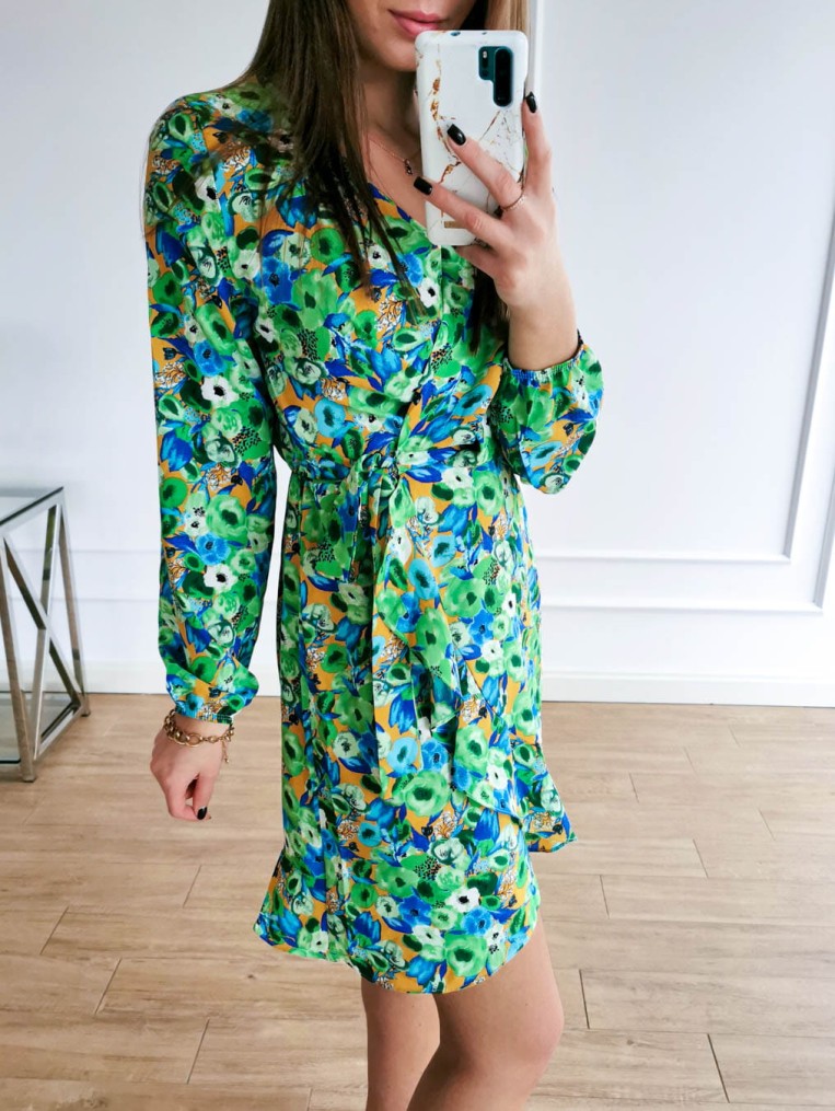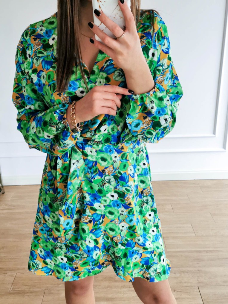 Sukienka zielona w kolorowe kwiaty kala